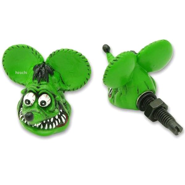 ガッツクローム ラットフィンクヘッド ライセンスボルトセットカラー:グリーンスタッド長:約23mm世界で2番目に有名なネズミ、ラット・フィンク。そのフィンキーの顔がそのままライセンスボルトになりました。