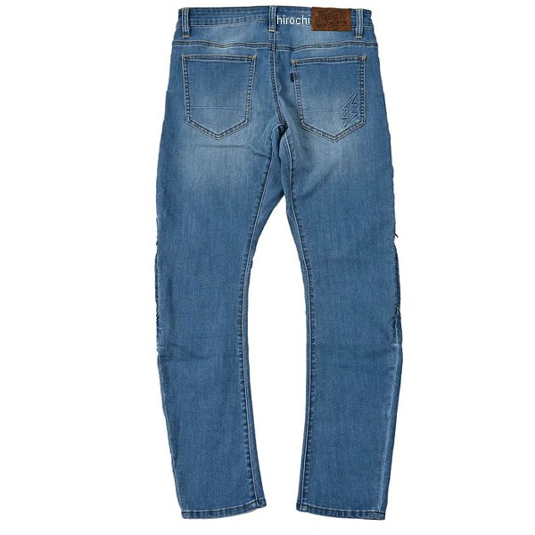 【商品詳細】生地厚:9.3OZカラー:ライトブルーサイズ:2XLプロテクター:膝【サイズ詳細】ウエスト:95cmヒップ:114cm前股上:20cm後股上:43cmわたり:38cm膝巾:22cm裾巾:19cm股下:83cm【商品説明】一般のデニムとは違い、バイク デニム専用設計になっています。バイクにまたがる際、無理なく股が大きく広げられるよう股下部分は180度開脚できる立体構造を採用しました。生地もストレッチ性のある素材を選ぶ事で、ライディング時の姿勢にも無理なく履き続けることを可能にしました。そして、極力バイクを傷つけないために、リベットなどの金属パーツは最小限に抑えられています。【RIDEZ×CORDURA Fabrics】 コーデュラファブリックは「厳しい使用条件にも耐えられる強靭な生地」 をコンセプトに誕生しました。生地は軽量でありながら非常に頑丈であり、長期間の使用にも耐えられる耐久性があります。RIDEZが新しいデニムの開発にあたり、「より快適にバイクの運転に集中してほしい」という思いから、従来の二重構造ではなく、軽量で通気性に優れたSingle layer構造にこだわり、CORDURAを採用しました。高い強度を持ちながら軽い。世界トップクラス、最高品質の生地を使用したRIDEZ MOTO DENIMをぜひ一度その目でお確かめ下さい。【CORDURA Advanced Fabrics】コーデュラは、アメリカにあるINVISTA社が製造する生地です。高い耐久性と優れた強度を持つ生地で、アウトドア商品・軍需品・作業着などにも使用されます。この生地は、ナイロンやポリエステルの強化繊維を使用しており、摩耗や引き裂きに対する耐性が非常に高いのが特徴です。その耐久性と信頼性から、世界で愛用されています。