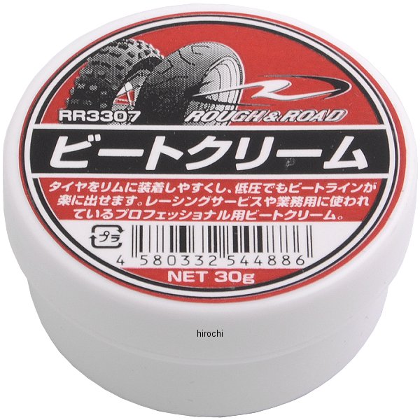 ラフ&ロード ビートクリーム【仕様説明】内容量:30グラムタイヤ交換時の必需品。タイヤのビート部(みみ)に塗布して組み込むと作業がはかどります。レーシングサービスや業務用に使われているプロフェッショナル用ビートクリーム。タイヤをリムに装着しやすくなり、低圧でもビートラインが出せます。
