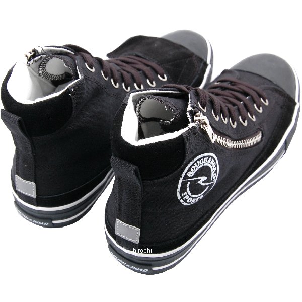 ラフ&ロード 秋冬モデル ラフライディングスニーカーサイズ:23cmカラー:ブラック98【仕様説明】目指したのはライディングとファッションの融合というチョット欲張りなスニーカーです。ベースカラーは着まわししやすい「ブラック」と「アイボリー」をチョイスし、そこにレッドとブルーをコンビネーション。機能も充実。斜めに大きく開くファスナーは脱ぎ履きしやすさ抜群、外側ファスナーなので車体を傷つける心配がいりません。踵にはリフレクターを付け視認性も確保。また、くるぶし内側に厚めのクッションを入れニーグリップをしやすくしています。左足に装備した大きめのシフトガードは幅5.5センチとシフト場所の個人差にも余裕で対応。バイク用品メーカーがバイク乗りの為のスニーカーです。【機能】・ジッパー仕様・くるぶしプロテクション(内外)・左足シフトガード・ベンチレーション・リフレクター