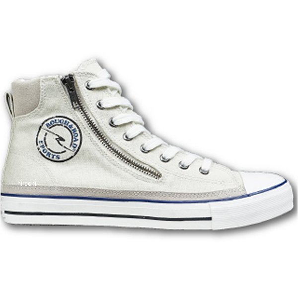 ラフ&ロード 秋冬モデル ラフライディングスニーカーサイズ:25cmカラー:アイボリー/ブルー【商品情報】目指したのはライディングとファッションの融合というチョット欲張りなスニーカーです。ベースカラーは着まわししやすい「ブラック」と「アイボリー」をチョイスし、そこにレッドとブルーをコンビネーション。機能も充実。斜めに大きく開くファスナーは脱ぎ履きしやすさ抜群、外側ファスナーなので車体を傷つける心配がいりません。踵にはリフレクターを付け視認性も確保。また、くるぶし内側に厚めのクッションを入れニーグリップをしやすくしています。左足に装備した大きめのシフトガードは幅5.5センチとシフト場所の個人差にも余裕で対応。バイク用品メーカーがバイク乗りの為のスニーカーです。【機能】・ジッパー仕様・くるぶしプロテクション(内外)・左足シフトガード・ベンチレーション・リフレクター
