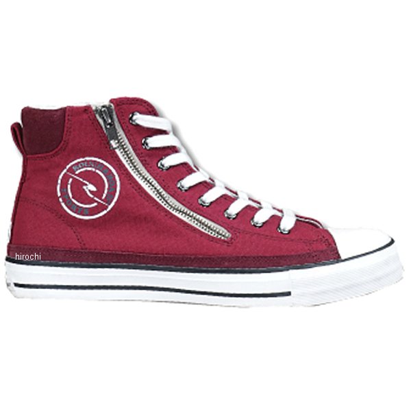 ラフ&ロード 春夏モデル ラフライディングスニーカーサイズ:25cmカラー:ワイン【素材】キャンバス【仕様説明】目指したのはライディングとファッションの融合というチョット欲張りなスニーカーです。ベースカラーは着まわししやすい「ブラック」と「アイボリー」の他に、足元が映える「グレー」「ネイビー」「ワイン」をラインナップ。 機能も充実。斜めに大きく開くファスナーは脱ぎ履きしやすさ抜群、外側ファスナーなので車体を傷つける心配がありません。踵にはリフレクターを付け視認性も確保。また、くるぶし内側に厚めのクッションを入れニーグリップをしやすくしています。左足に装備した大きめのシフトガードは幅5.5センチとシフト場所の個人差にも余裕で対応。バイク用品メーカーがバイク乗りのために作ったスニーカーです。【機能】 ・ジッパー仕様・くるぶしプロテクション(内外) ・左足シフトガード ・ベンチレーション ・リフレクター