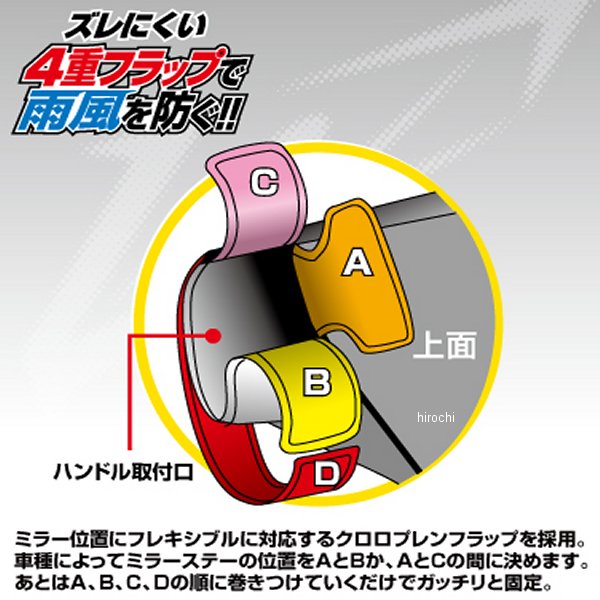 ラフ&ロード 秋冬モデル HOTハンドウォーマーサイズ:フリーサイズカラー:ネイビーカモ【素材】バリアクロス600D、バリスターナイロンクロス、PVC、PVCタフタ、圧縮ウレタン、クロロプレン【仕様説明】ハンドガード付のオフ車からネイキッド、ビッグスクーターまで※1幅広く対応するハンドウォーマー。装着時にも抜群の操作性を実現愛車に合わせてコーディネートしやすくなっています。裏地部分には防水フィルムを入れ、入り口部分にシャーリングを設けることで雨水の浸入を抑えた簡易防水仕様となっています。※1 車両タイプ、ハンドガードの大きさによってはつかないことがあります。