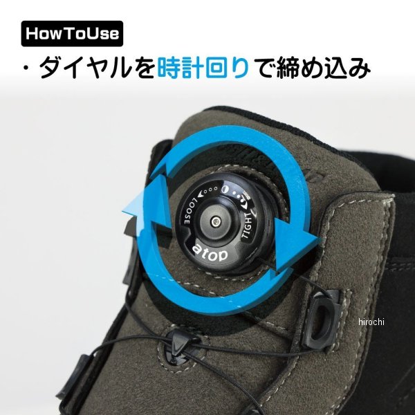 ラフ&ロード ウォータープルーフダイヤルシューズ ブラック 27cmサイズサイズ:27cmカラー:ブラックWIDTH(足囲):4EMATERIAL:本体/合成皮革、ゴム素材【機能紹介】・防水(耐水圧20,000mm)・a-topダイヤルワイヤーシステム・両足シフトガード・リフレクターカジュアル防水ダイヤルシューズスニーカーデザインで気負わず履けるシューズ。防水仕様・ダイヤルワイヤーシステム「a-top」・リフレクター・整形くるぶしパッドとあらゆるライディングシーンに必要不可欠な機能を装備。バイク乗車時のことはもちろん、降りた後や普段履きでも違和感のないシンメトリーのシフトパッドデザインを採用。高い耐久性のあるOrtholite®インソールを採用し、アジアンフィット(幅広)の4Eサイズで設計するなど、細部にこだわった1足です。