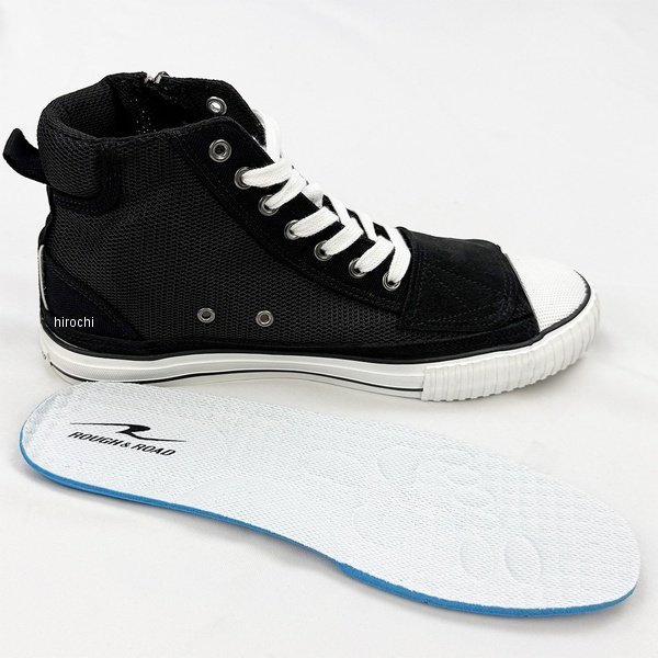 ラフ&ロード ラフエアスルーRDスニーカー ブラック 26.0cmサイズ:26.0cmカラー:ブラック素材:本体/ポリエステルメッシュ、コットンメッシュハイカットスニーカーが通気性をアップしてリニューアル。バイクに乗るための機能をギュッと凝縮。蒸れないメッシュスニーカーが更なる通気性を携えカムバック。ツーリング等で名所、旧跡等も躊躇なく行けるさりげないデザインのオンライドとオフライド仕様。メイン素材は酷暑の夏でも涼しく快適なメッシュ素材採用。斜めに大きく開くファスナーは靴ひもをほどく必要がなく脱ぎ履きのしやすさが抜群です。しかも外側ファスナー仕様なので車体を傷つける心配がありません。踵にはリフレクターを装備し、視認性を確保。また、くるぶし内側に厚めのクッションを入れ車体をホールドしやすくしています。左足に装備した大きめのシフトガードは、幅5.5センチとシフト場所の個人差にも余裕で対応。また表面に凹凸のある立体カップインソールを採用し、通気性とクッション性を高め快適さが向上。バイク用品メーカーがバイク乗りのために作ったスニーカーです。機能紹介・メッシュ仕様・外側ジッパー仕様・くるぶしプロテクション(内外)・左足シフトガード・ベンチレーション・リフレクター・立体カップインソール※商品画像はイメージです。実際の商品と色や形状が異なる場合がございますのでご注意ください。