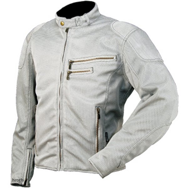春夏モデル ライディングZIPメッシュジャケットです。カラー:シルバーサイズ:LL素材:スパックスメッシュ、スーパーエアメッシュ、クールマックスメッシュ・ビンテージ感たっぷりなデザインは時と場所、そしてバイクを選びません。・メイン素材のスパックスメッシュはしなやかで強い、優れた特性を持ち高い安全性に貢献。・洗練されたスタイルがコーディネートの幅と行動範囲をグンと広げてくれます。