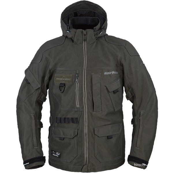 ラフ&ロード 春夏モデル マウンテンメッシュパーカーサイズ:Lカラー:エンボスダークオリーブ標準装備プロテクター:肩・肘・脊椎パッド(肩・肘はCEパッド)取付可能プロテクター:胸【素材】表地:ポリエステル裏地:ポリエステル襟裏:ポリエステル(吸汗・速乾)【仕様説明】圧倒的な通気性を誇る、引き裂き強度に優れたメッシュ生地を採用したミリタリーテイストジャケットです。襟裏は吸汗速乾ひんやりアイスタッチ素材により、サラサラ爽快な肌触り。ショート、ロング、キャンプツーリングでも収納に困らない多彩なポケットを装備し、その位置、バランスは、ツーリストの経験から設計、デザインされています。オプションのインナージャケットが装着可能で、寒暖差が心配な朝夕にも対応。酷暑の夏、水分補給に便利な収納式ペットボトルポケットも装備。