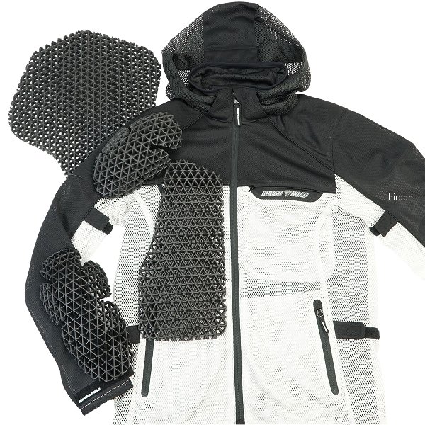 ラフ&ロード 春夏モデル ダイレクトエアメッシュパーカーFPサイズ:XLカラー:ブラック/プラチナシルバー標準装備プロテクター:胸・肩・肘・脊椎パッド【素材】表地/ポリエステル襟裏/ポリエステル(吸汗・速乾)【仕様説明】ライディングへの集中を妨げる酷暑からライダーを解放する究極のメッシュジャケット、ダイレクトエアシリーズのパーカータイプです。メイン素材にビッグホールメッシュ生地を採用し、大量のフレッシュエアをダイレクトにボディへ導き瞬時にクールダウン。肩から袖にかけてはスパックスメッシュを使用し、従来モデルより耐久性を向上。裏地を省き、胸・肩・肘・脊椎にエアスルーパッドを標準マウントし、安全性と通気性をとことんまで突き詰めた、放熱するために生まれた酷暑対応のサマージャケットです。