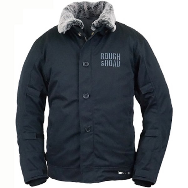 ラフ&ロード 秋冬モデル N-1RボアウインタージャケットFPサイズ:LLカラー:ブラック【素材】表地:ポリエステル、コットン、リブニット裏地:フェイクファー、タフタ中綿:ウォームマックス【仕様説明】標準装備:胸・肩・肘・脊椎パッド(フルパット仕様、肩・肘)N-1は米海軍の艦艇乗員用として採用されたデッキジャケットで、甲板上の寒さや風雨での過酷な環境で作業をするデッキクルーの為に開発されたミドル丈のジャケットです。防寒、防風性に優れたジャケットは、ライディング用としてバイカーにも古くから愛されてきました。ラフ&ロード 秋冬モデルではN-1をライディングジャケットにアレンジ。肩・肘・脊椎・胸パッドにバタつき防止フラップ等、ライディングウェアに不可欠な機能を装備。シンプルなデザインでコーディネートがしやすく、ライディングからタウンユースまで幅広く着こなせます。