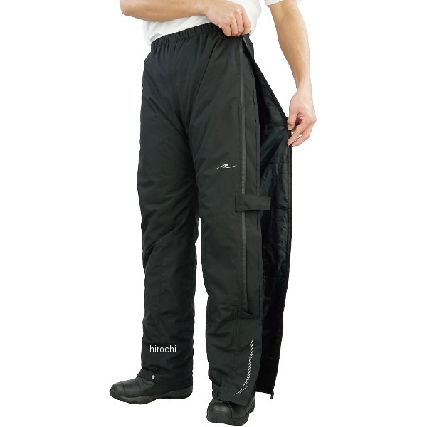ラフ&ロード 秋冬モデル ウインドガードサイドオープンオーバーパンツサイズ:BLカラー:ブラック【素材】表地/ポリエステル裏地/ポリエステル中綿/ポリエステル(キルティング加工)【仕様説明】両サイドが上から下までファスナーで開くのでライディングシューズを脱がずに脱ぎ履きが可能です。特に屋外でライディングシューズを履いたままオーバーパンツを脱ぐときは素早く脱げるので感動を覚えるレベルです。もちろん部屋の中などシューズを履いていなければ、サイドジッパーを使用せず普通に着用することも可能です。この際もジッパーを30-40cmほど下げて履くと履き口が拡がりとても履きやすくなります。