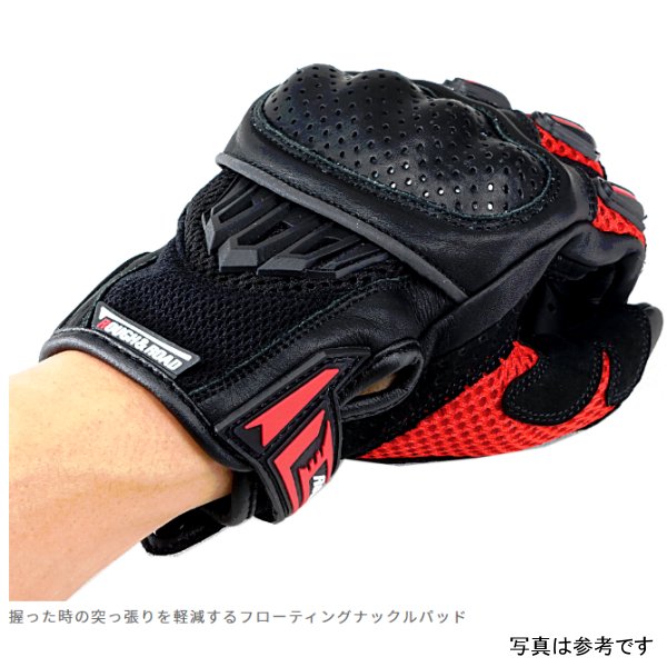 ラフ&ロード 春夏モデル プロテクションエアスルーグローブサイズ:WMカラー:ブラック/レッド【素材】甲側:ラッセルメッシュ、パンチングレザー、牛革、ベンチ穴付き樹脂パッド、ウレタンパッド、タフレザー(合成皮革)、反射素材 掌側:牛革、スマートタッチレザー両手タッチパネル対応、リフレクター掌側パンチングレザー【仕様説明】手の甲にラッセルメッシュ生地、手のひら側にはパンチングレザーを採用し、ナックルパッドや甲のパーツにまでベントホールを設けることで抜群の通気性を実現、快適に暑さを凌げるグローブに仕上げました。要所に配したパッド類で必要十分なプロテクション性能と、快適なベンチレーションの両立を満たしたサマーグローブのベストセラーです。スマホ対応なので、発汗でグローブの脱着がしづらくなる夏もグローブを外さずにスマホの操作ができます。