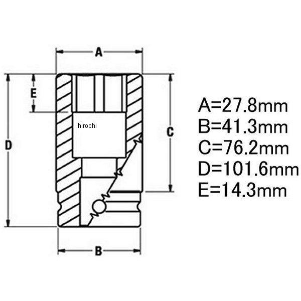 デトロイトディーゼルエンジンヘッドボルトインパクトソケットです。ソケットエンド直径 (A):1 3/32インチ (27.8mm)ドライブエンド直径 (B):1-5/8インチ (41.3mm)ボルトクリアランスの深さ(C):3インチ (76.2mm)長さ(D):4インチ (102mm)オープニング深さ(E):9/16インチ (14.3mm)16mm、3/4インチドライブ、12ポイントデトロイトディーゼル 50 および 60 シリーズのエンジンのヘッドボルトに使います。ヘッドボルトの中には鋳物のシリンダーヘットとの間のクリアランスが挟いために、薄型ソケットが必要になることがあります。トラックやバス、キャンピングカー、船舶、大型エクイップメントなどのエンジンがこれに該当します。ソケットの高さを増したので、ドライブツール(ラチェットやブレーカーバー、トルクレンチ)と周りに取り付けられたバルブトレイン部品との間にクリアランスが生まれ、エンジンのどちら側からでもヘッドボルトを回すことができます。※商品お届け時期につきまして、通常は一か月半前後となっておりますが仕入れ先の出荷状況により、お時間を頂戴する場合がございます。※商品手配後に、供給不可となる場合がございます。あらかじめご了承のうえご注文ください。