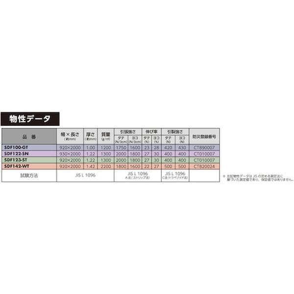 ・窓に取り付けることで室内の音が外に漏れ出すのを軽減できます。・1000Hzの周波数帯域で15.1dB、2000Hzの周波数帯域で20.5dBの遮音効果があります。・糊残りのしにくい弱粘着タイプです。・室内の窓用防音対策に。・室内の音が外へ漏れるのを軽減。・幅(m):0.92・長さ(m):2.0・厚さ(mm):1.22・色:白(半透明)・粘着付・消防庁防炎規格適合品・透光率:52.5%・UVカット・ROHS2適合・窓用・基布:ポリエステル、樹脂:ポリ塩化ビニル、粘着剤:アクリル系・網ガラス・2層ガラスににご使用の場合は長時間強く直射日光や西日にあたるようなご使用はガラスが割れる場合もありますのでご注意ください。・生産国 日本・JANコード 4977720166124・質量 2.420kg・コード:368-8922 ・品目:SDF123ST