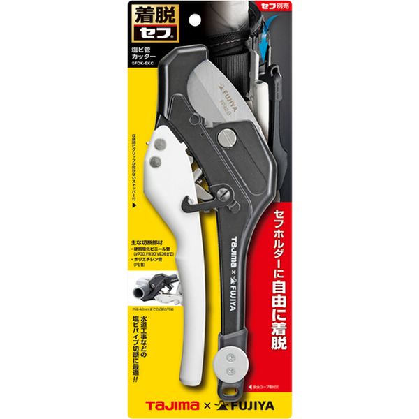 ・塩ビ管カッターです。・セフフック付で腰周りに装着可能です。(※セフホルダーは別売)・切り口がシャープな高精度加工の刃を採用しています。・塩ビパイプなど外径42mmまでの切断が可能です。・軽量コンパクト設計です。・硬質塩化ビニール管の切断用。・全長(mm):239・適合替刃:SFDK-EKCB・色:ブラック/ホワイト・刃厚(mm):1.6・刃長(mm):86・箱入数(枚):4・パック入数(枚):1・対象被削材:VP30、VW30、VE36まで・安全ロープ用穴付・替刃式・本製品には通電性がありますので、感電に注意して下さい。・安全保護の為、使用時及び刃の交換時には、保護メガネ・作業手袋を着用して下さい。・製品仕様は予告なく変更する場合がございます。・予めご了承ください。・生産国 日本・JANコード 4975364269133・質量 370g・コード:693-9755 ・品目:SFDKEKC