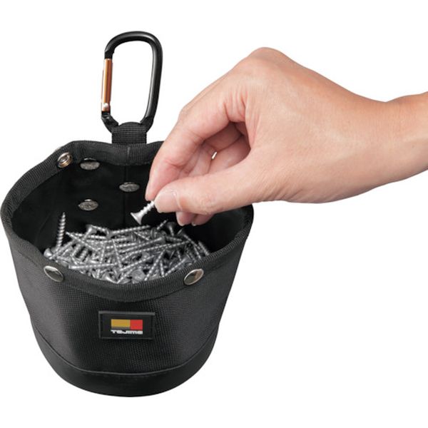 ・最も劣化しやすい底面・立ち上がり部を補強・側面が柔軟につぶれるので狭所での作業時もスムーズ・本体が自立するため腰から外してちょい置きもできる・スナップボタン2個付きでビスがこぼれにくい・工具収納用・色:黒・形状:パーツケース ビス用1口・幅(mm):110・奥行(mm):110・高さ(mm):190・セフ取付収納物総重量:3kg・セフホルダーが付属しておりません。ご使用になるには別途セフホルダーをお買い求めください。・本体:ポリエステル・本体:ポリ塩化ビニル(PVC)・カラビナ:アルミ・必ず許容総重量以内でご使用ください。・取扱い説明書をよく読んでからご使用ください。・製品仕様は予告なく変更する場合がございます。・予めご了承ください。・生産国 中国・JANコード 4975364267061・質量 110g・コード:366-6431 ・品目:SFPCNB1