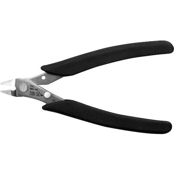 ・片刃仕様により切断面が平滑で仕上りがキレイになります。・まな板刃の上を切刃が削ぐように切り落とすのでバリが残りません。・後処理を省き作業時間を大幅にカットします。・滑りにくいエラストマー成型グリップを採用しています。・刃先を閉じて収納できるバネを使った開閉ロック機能を搭載しています。・(PAT.)プラスチック専用です。・全長(mm):140・刃表面形状:フラット刃・切断能力(mm)プラスチック:φ3.0・片刃仕様・フラット刃・開閉ロックばね付・プラスチック専用・ステンレス(SUS420J2)・グリップ:エラストマー樹脂・非絶縁工具です。電源を切ってお使い下さい。・使用用途以外には使用しないで下さい。・その他商品台紙注意事項参照。・生産国 日本・JANコード 4952269114720・質量 70g・コード:338-2074 ・品目:SKN140