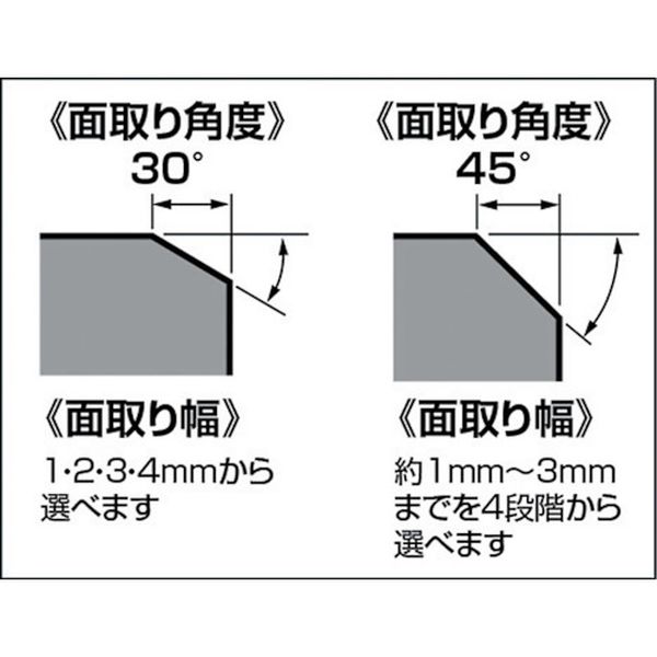 ・刃はカッター替刃大(L型替刃)を半分に折って使用します。・取り付け角度は30°で従来の取付け角度60°の製品に比べ1.5倍の切れ味を実現しました。・滑りの良いフッ素コーティング加工を施し、従来の木製ボードカンナに比べ3倍の滑り良さを実現しました。・面取り幅を4段階で選べる調整板機構です。・高耐久アルミダイカストをベースに採用しているので変形せず摩耗にも強いです。・30°面取り用。・刃幅(mm):18・全長(mm):180・タイプ:面取り用・色:白・面取り角度(°):30・奥行(mm):60・高さ(mm):30・面取り幅1、2、3、4mm・刃:炭素鋼(SK120)・台:アルミダイカスト・刃物ですので取り扱いにご注意ください。・使用後の折れ刃は、適切な処理をしてください。・生産国 中国・JANコード 4975364056306・質量 190g・コード:377-2969 ・品目:TBK180V30
