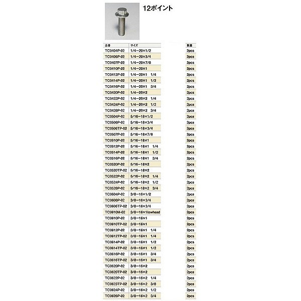 ポッシュ POSH 12ポイントボルトサイズ:3/8-16X3/4スモールフランジ2個入り