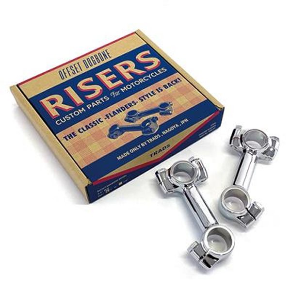 グッズ GOODS TRADS オフセットドッグボーンライザー 1インチ 25.4mm汎用サイズ:Height (Overall) 4-7/8"Rise Height 3-1/2"Width 1-3/4"Depth (Face to Rear) 2-21/64"材質:スチール左右セット【商品説明】TRADSオリジナルのドッグボーンライザー。フランダーススタイルをベースに、中心から11/16インチ(17.5mm)オフセットされたデザイン。ナローなハンドルの取り付けが可能に。