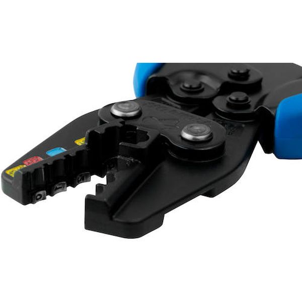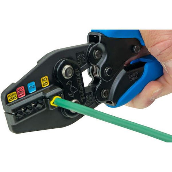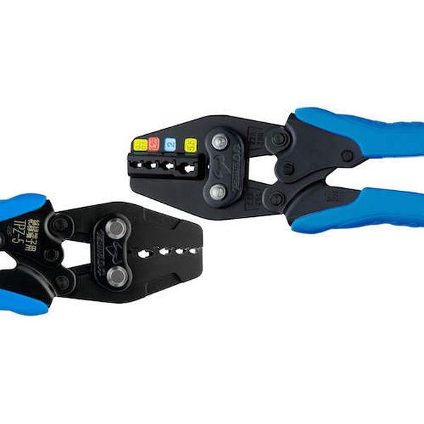 ・より軽い力で圧着が可能となるよう、最も倍力率が高くなる位置関係を構造力学計算した二重テコのトグル機構を採用しています。・仮押さえをしても端子のつぶれが最小限で、電線挿入がスムーズにでき圧着前に位置を確認することができます。・圧着マークはしっかりと浮かび上がり、クッキリと見えます。・グリップは太く、圧着時にしっかりと力を入れることができ、手が痛くならないエラストマー樹脂です。・絶縁被覆付圧着端子・スリーブ用の圧着作業に・全長(mm):260・圧着端子([[MM2]])絶縁被覆付圧着端子用:0.3/0.5/1.25/2/5.5・圧着工具 絶縁被覆付圧着端子・スリーブ用・本体:機械構造用合金鋼・グリップ:エラストマー樹脂・焼入れ:頭部42~46HRC ハンドル部46~49HRC・非絶縁工具です。・電源を切ってお使い下さい。・使用用途以外には使用しないで下さい。・その他商品台紙注意事項参照。・生産国 日本・JANコード 4952269115147・質量 445g・コード:551-9680 ・品目:TPZ5