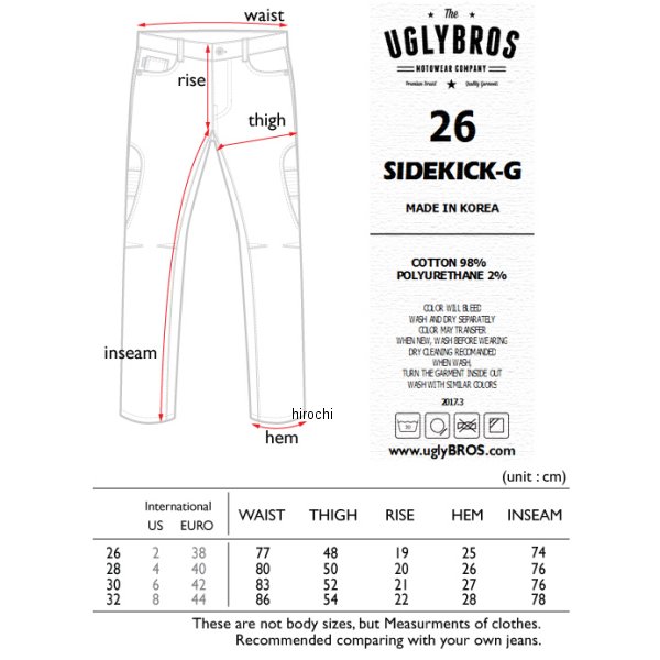 ラフ&ロード 秋冬モデル uglyBROS モトパンツ SIDE KICK 女性用サイズ:26インチカラー:ブルー標準装備プロテクター:膝、腰(CE規格)【素材】コットン98% 、ポリウレタン2%【仕様説明】さりげなさの中にバイカージーンズの肝をしっかり投入。ストレッチデニムを使ったフィッティングで履きやすさ抜群。腰と膝上のシャーリングパーツで屈曲追従性能をアップ。高規格CEパッドを膝と腰に採用 ニーパッドは外入れ式で簡単脱着可能。ニーパッドは屈曲性が高くライディングフォームを妨げません 。