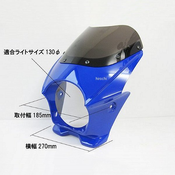 マッドマックス MAD MAX 汎用ビキニカウルφ130ヘッドライト車用カラー:ブルー本体サイズ:高さ約300mm、横約270mm、奥行き約230mm取り付け横幅:約185mm