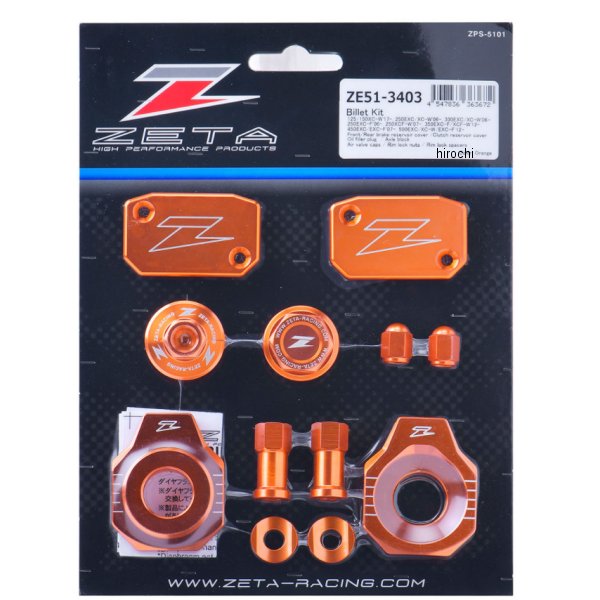 ジータ ZETA ビレットキットKTM EXC、EXC-Fカラー:オレンジ車体のドレスアップ効果が高く、機能性のあるアルミビレットパーツのキット。各パーツをにひとつにまとめた事で、わずらわしいパーツ選択も必要ありません。車種によってカラー・形状・セット内容が異なります。