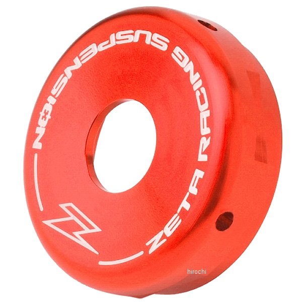 ジータ ZETA リアショック エンドキャップタイプ:WP用カラー:レッドシリンダーヘッド:Φ46mm【仕様説明】リヤショックのシリンダーに圧入して取付けるエンドキャップです。サスペンションオーバーホールでのキャップ分解時に便利な、マイナスドライバー等を引掛けて叩きやすい溝を4か所配置。7000系アルミニウムをCNC加工、カラーアルマイトを施したレーザープリント仕上げ。