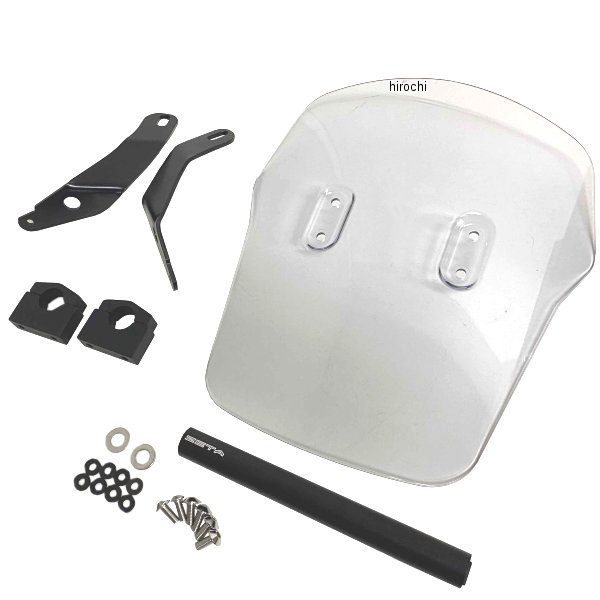 ジータ ZETA アドベンチャーウインドシールド13年-21年 ホンダ クロスカブ110※ディスクブレーキ車はマスターシリンダーに干渉するため取付不可【スクリーン】・素材/材質:ポリカーボネート製・カラー:ライトスモーク・サイズ:高さ334mm×幅295mm×厚み3mm【マウントシステム】マウントバー:アルミ合金製ステー:スチール製スクリーンアダプター:アルミ合金製マウントバー:ブラック(サンドブラスト処理、アルマイト仕上げ)ステー:ブラック塗装仕上げスクリーンアダプター:ブラック(サンドブラスト処理、アルマイト仕上げ)マウントバー:直径22.2mm、全長209mmクロスカブ110用は純正ミラーホールを利用して装着。スマホホルダーやUSB電源などを、広範囲に幅広く取り付け可能。