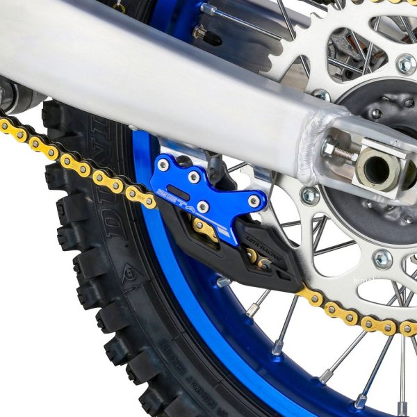 ジータ ZETA チェーンガイド24年 ヤマハ YZ250F23年-24年 ヤマハ YZ450Fカラー:ブルー【仕様説明】耐摩耗性、復元性に優れるPU樹脂製スライダーとジュラルミンプレートで構成されたチェーンガイド。衝撃を受けやすく、トラブルになりやすい箇所にはPU樹脂を採用し、スイングアーム取付ステーへの負荷を緩和。3Dデザインによるスライダーはあらゆる方向の衝撃を逃がす。車種専用にデザインされたジュラルミンプレートにより剛性が必要なガイド性能を確保。※取付けは取り外し可能な低-中強度のネジロック剤を塗布してください。※定期的にスライダーの摩耗を点検してください。※トレール車に装着する場合は、レーサーと同等にガイド性能を高めて設計しているため丁数によって摩耗の速度が異なります。(最大丁数 48丁まで)
