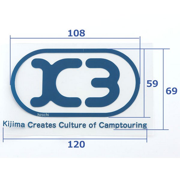 キジマ K3 ステッカー 転写【仕様】カラー:ネイビーサイズ:69x120(59x108)mm カッコ内はK3マークのサイズ【特徴】"K3"ロゴの抜き文字のステッカー。貼付け面にロゴのみが残る為、ステッカーチェーンに最適です。オートバイ以外にも自動車やキャンプギアにも映えるステッカーです。
