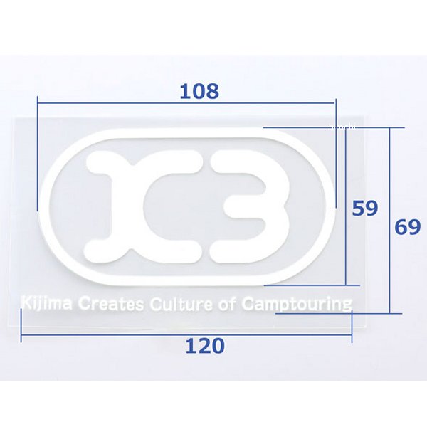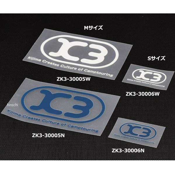 キジマ K3 ステッカー 転写【仕様】カラー:ホワイトサイズ:69x120(59x108)mm カッコ内はK3マークのサイズ【特徴】"K3"ロゴの抜き文字のステッカー。貼付け面にロゴのみが残る為、ステッカーチェーンに最適です。オートバイ以外にも自動車やキャンプギアにも映えるステッカーです。