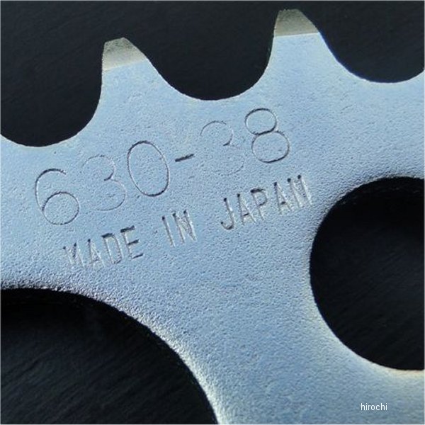 ビーアールシー BRC リアスプロケット 630/38T 鉄製 RS形状72年-77年 カワサキ Z172年-77年 カワサキ Z272年-77年 カワサキ Z750RS~A4リアドラムブレーキ車用 ※リアデイスク車には装着出来ません。サイズ:630丁数:38T中心の大きい穴の直径は97.8φ。軽量穴は40φと20φです。取付穴は6穴でチェーンサイズは630で歯数は38丁用です。特に860ccにボアアップしている方専用に開発したRSデザインの630スプロケットになります。860ccの場合630-42Tですと吹けきってしまい、630-35Tにすると低速が全くなくなる為、低速がきちんとあって高回転も良く回す為には、いろいろな丁数をテストしこの630-38Tがベストサイズとなりました。丁数にはかなり拘ってます。630でないとZ2とは呼べないと思っている方や今では絶版となっているRSの純正スプロケットデザインに拘っている方には特に朗報です。純正部品ではありませんが、日本製品ですので安心して使用出来ます。材質は純正と同じ、鉄製でユニクロメッキ仕上げですので、乗り方によりますが、約30000km以上の耐久性があります。鉄製のため、製造上どうしても小キズやメッキムラ等がありますのでご理解ご了承のほどよろしくお願い致します。※メーカー欠品の場合、長期納期となります。ご了承ください。
