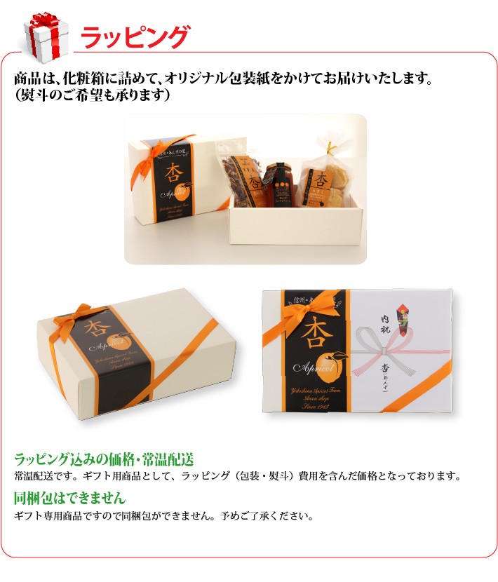 送料無料(ラッピング・送料込みで企画されたギフト商品)でお届けします。Yokoshima Apricot Farmの自家農園で育てたアプリコットで作った午後のティータイムセットです。杏紅茶にコンフィチュールを溶かして、ラスクを楽しんでみてください。【生産者】Yokoshima Apricot Farm(長野県千曲市)【内容量】コンフィチュール×1、あんずラスク×1、杏紅茶×1【ラッピング】化粧箱・包装紙・熨斗【発送時期】ご注文後、約2日~5日(常温配送)【賞味期限】単品情報をご参照ください。【保存方法】常温保存、開封後は冷蔵庫に保管し、お早めにお召し上がりください。【贈り物】誕生日プレゼント/還暦祝い/お礼/お祝い/内祝い/お見舞い品