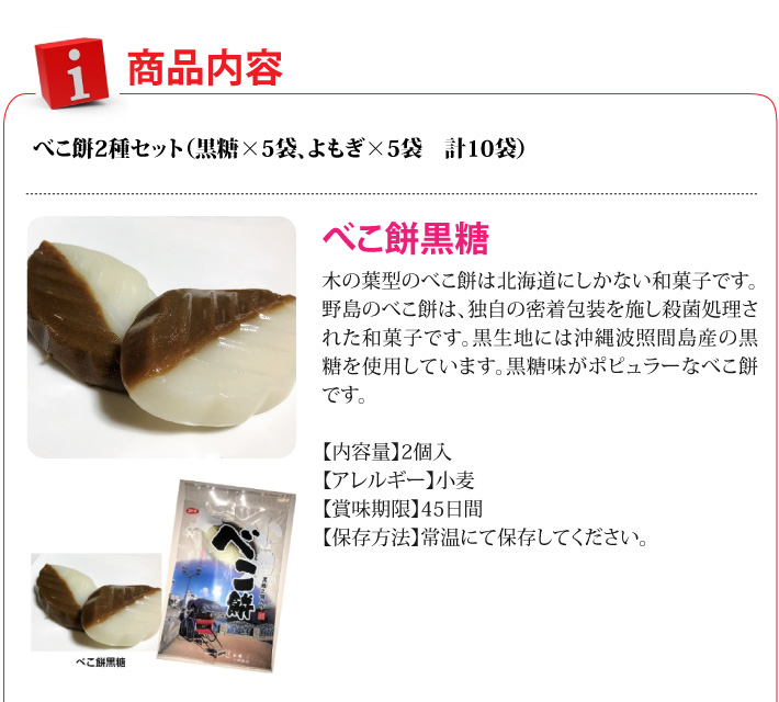 送料無料(ラッピング・送料込みで企画されたギフト商品)でお届けします。木の葉型のべこ餅は北海道にしかない和菓子です。野島のべこ餅は、独自の密着包装を施し殺菌処理された和菓子です。黒生地には沖縄波照間島産の黒糖を使用しています。【生産者】野島製菓(北海道産 小樽市)【セット内容】べこ餅2種セット(黒糖×5袋、よもぎ×5袋 計10袋)【ラッピング】なし。配送用段ボールになります。【発送時期】ご注文後、約1日~5日(常温配送)【賞味期限】45日【保存方法】常温で保管してください。【贈り物】誕生日プレゼント/還暦祝い/お礼/お祝い/内祝い