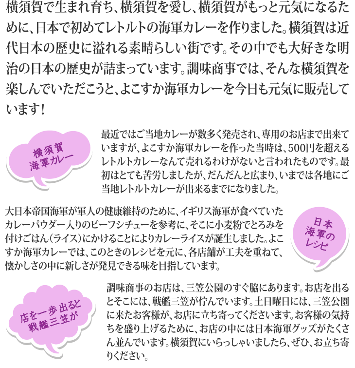 送料無料(ラッピング・送料込みで企画されたギフト商品)でお届けします。よこすか海軍カレー!ギフト・贈り物に話題のご当地グルメです。よこすか海軍カレーを楽しむ基本セット。たっぷり楽しむ8食入りです。大日本帝国海軍が軍人の健康維持のために、イギリス海軍が食べていたカレーパウダー入りのビーフシチューを参考に誕生したカレーライス。よこすか海軍カレーは、そのレシピを元に、懐かしさの中に新しさが発見できるカレーとして誕生しました。【生産者】調味商事(神奈川県横須賀市)【内容量】よこすか海軍カレーネイビーブルー(レトルトパウチ180g)×8袋【用途】御中元/御歳暮/お土産/プレゼント/各種贈答【ラッピング】化粧箱・包装紙・熨斗【発送時期】ご注文後、約1日~5日(常温配送)【賞味期限】製造後2年【保存方法】直射日光、高温多湿をさけ開封後は冷蔵庫に保管し早めにお召し上がりください。【贈り物】誕生日プレゼント/還暦祝い/お礼/お祝い/内祝い/お見舞い品/志