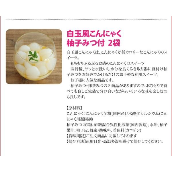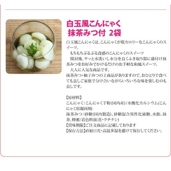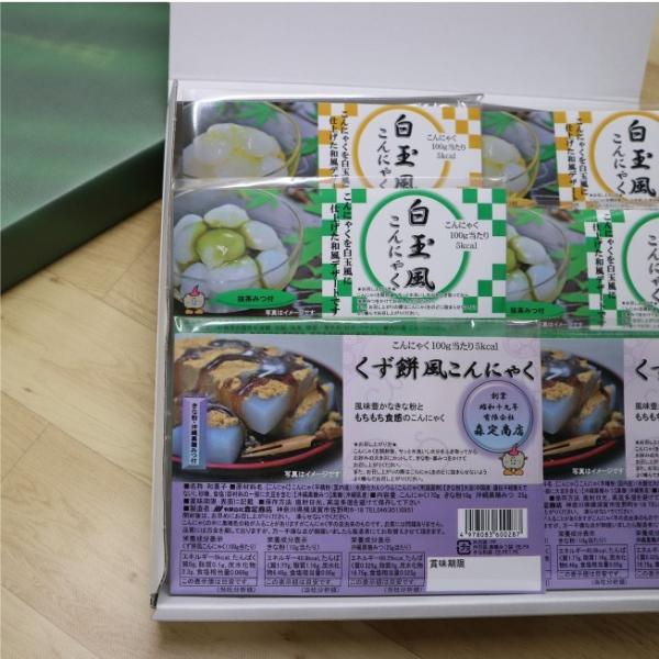 送料無料(ラッピング・送料込みで企画されたギフト商品)でお届けします。食前!食後!のスイーツとして、食べてみませんか?くず餅風こんにゃく・白玉風こんにゃくは、こんにゃくが低カロリーなこんにゃくのスイーツ。くず餅風こんにゃくは、もちもち食感のこんにゃくにきな粉・沖縄黒糖みつを!白玉のように白く、女性や子供に人気の白玉団子をこんにゃくで作ったもちもちぷるぷる食感の白玉風こんにゃくには、柚子みつ・抹茶みつを!白玉粉を使わないのでカロリーが少なくとってもヘルシーです。【生産者】森定商店(神奈川県横須賀市)【内容量】くず餅風こんにゃく きな粉・沖縄黒糖みつ付 2袋/白玉風こんにゃく 柚子みつ付 2袋/白玉風こんにゃく 抹茶みつ付 2袋【ラッピング】化粧箱・熨斗【発送時期】ご注文後、約3日~7日(常温配送)【賞味期限】60日【保存方法】直射日光、高温多湿を避け保存して下さい。開封後はお早めにお召し上がり下さい。凍らせないで下さい。【贈り物】誕生日プレゼント/還暦祝い/お礼/お祝い/内祝い/お見舞い品/志