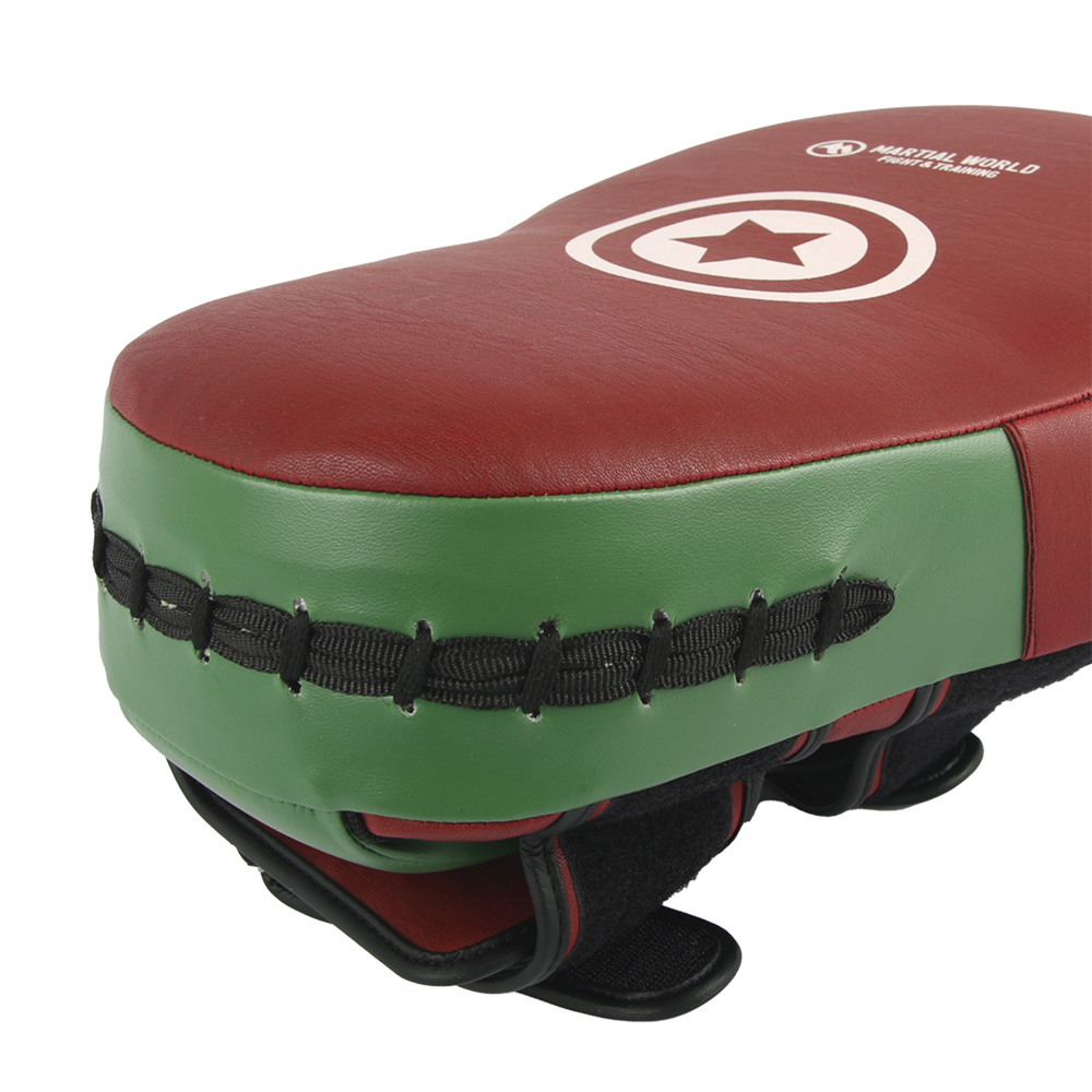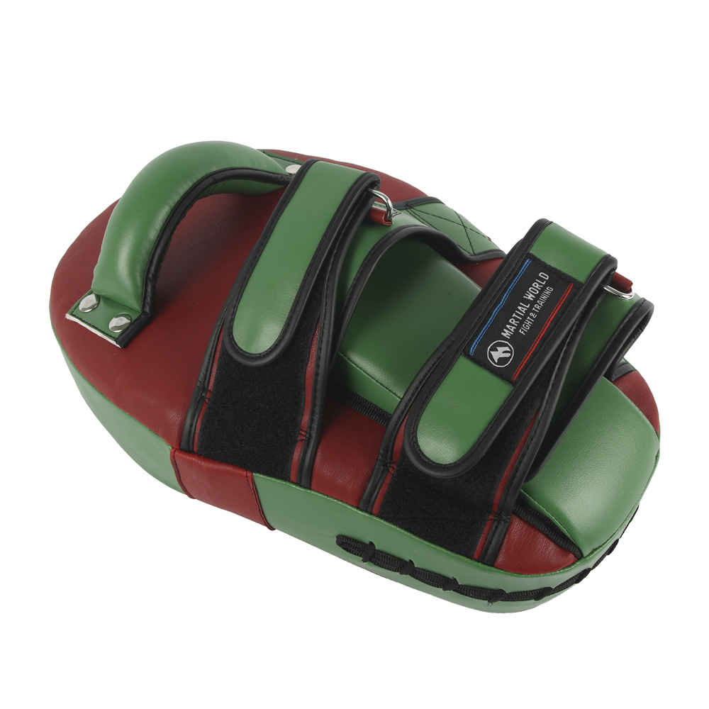 キックミット寄りのパンチキックミット! 持ち手はキックミットのバーになっている為、 ハードなキックにも耐えることができます。 腕は二本のベルトで固定することで長時間持っても疲れにくく、 手首部分にもパットを付けた事で衝撃吸収にも優れてます。 ■サイズ/幅24×高さ37×厚さ8cm ■重量/約950g/片手 約1.9kg/set ■素材/PU □よくあるご質問□ Q 2個セットですか? A. セット販売になります。 デザインは予告なく変更になる場合がございます。 ボクシング ミット パンチングミット