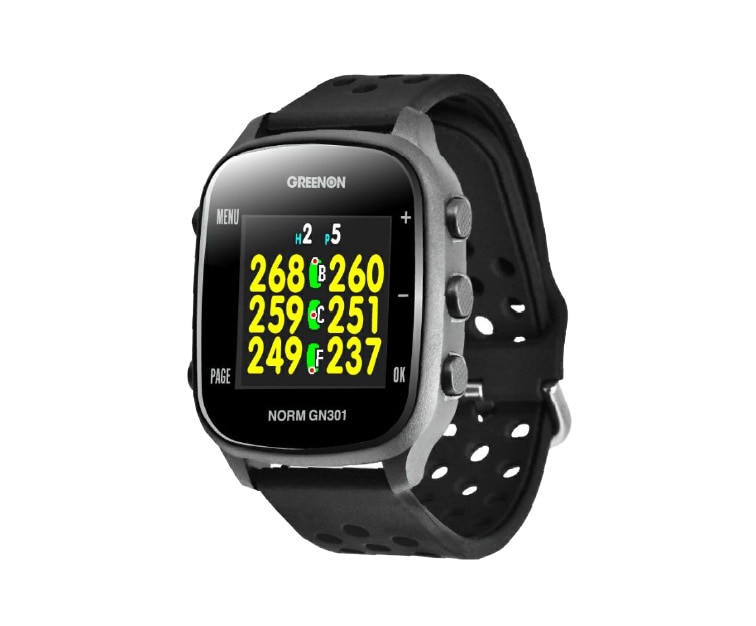 腕時計感覚で装着でき、クラブを持ちながらでも距離を確認可能。充実した機能で、プレー中もグリーンまでの距離を簡単に把握できます。