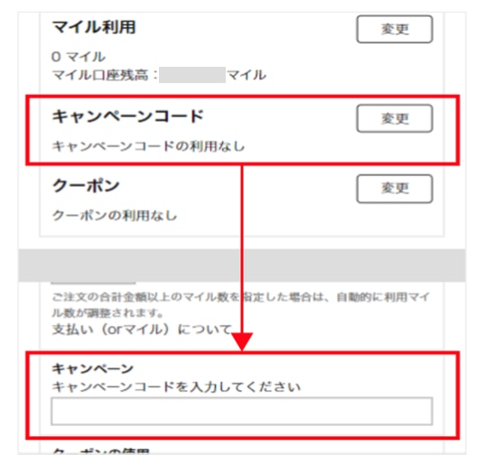 「キャンペーンコード」欄にて直接キャンペーンコードを入力してください。
