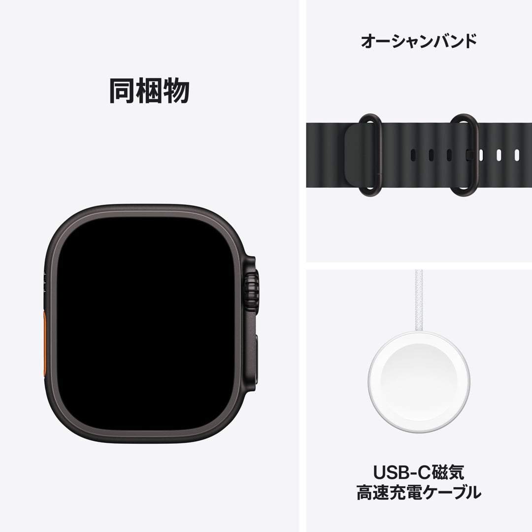 Apple Watch Ultra 3(GPS + Cellularモデル)- 49mmブラックチタニウムケースとブラックオーシャンバンド with AppleCare+