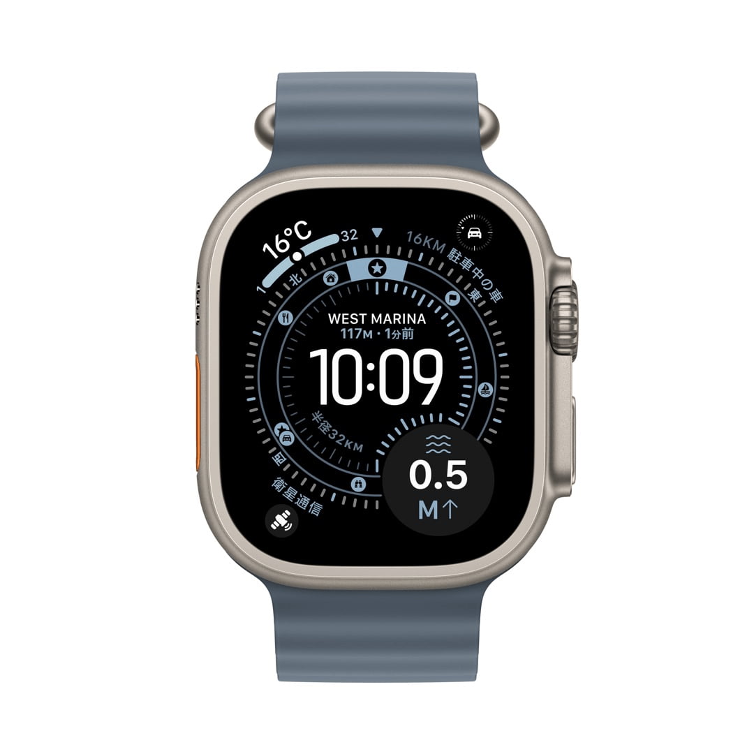 Apple Watch Ultra 3(GPS + Cellularモデル)- 49mmナチュラルチタニウムケースとアンカーブルーオーシャンバンド