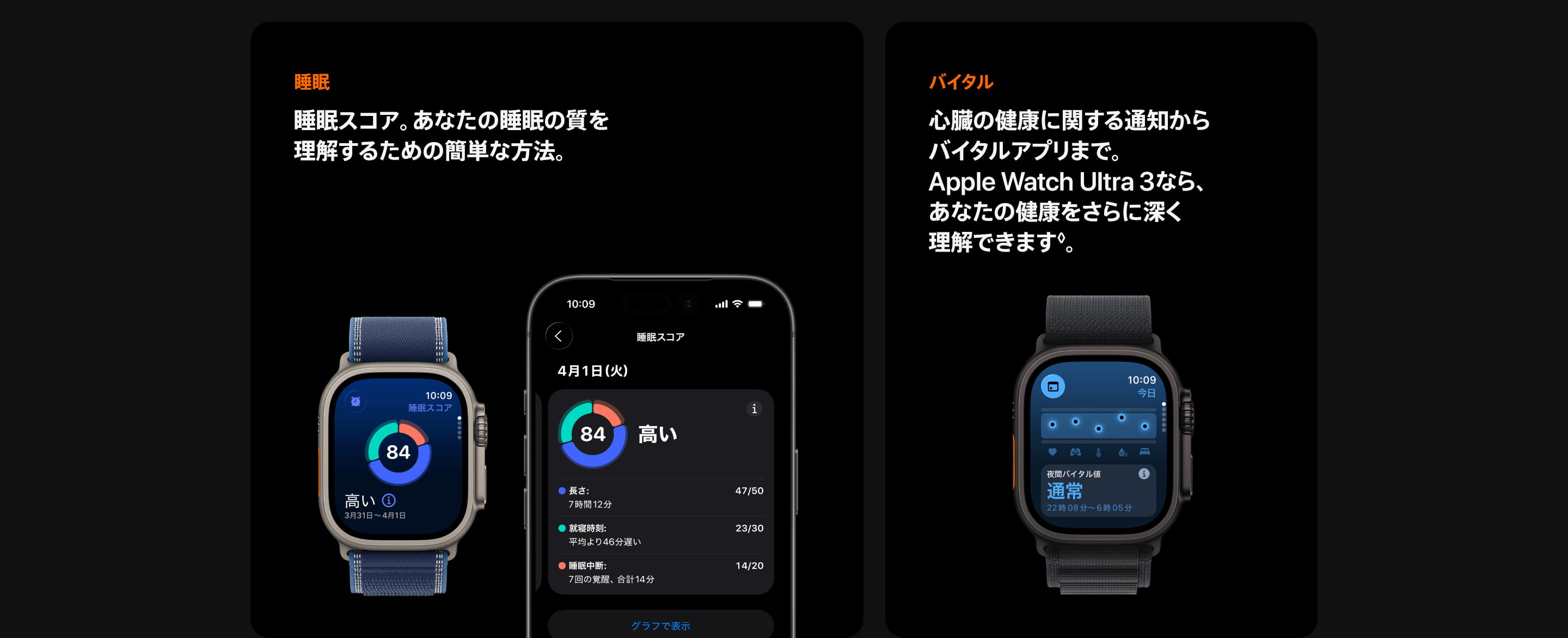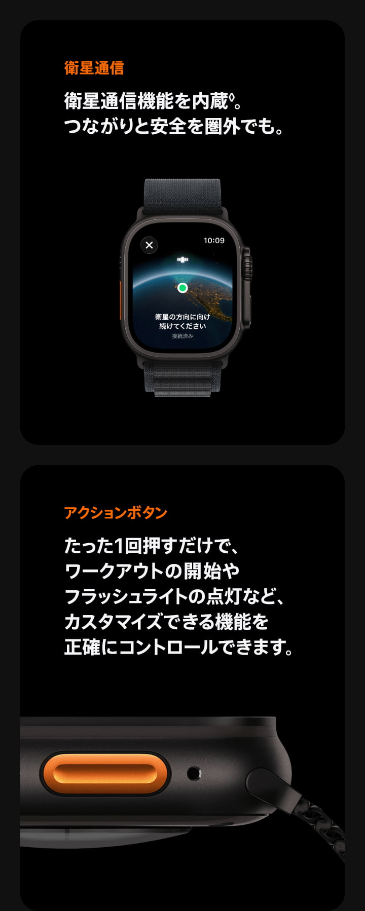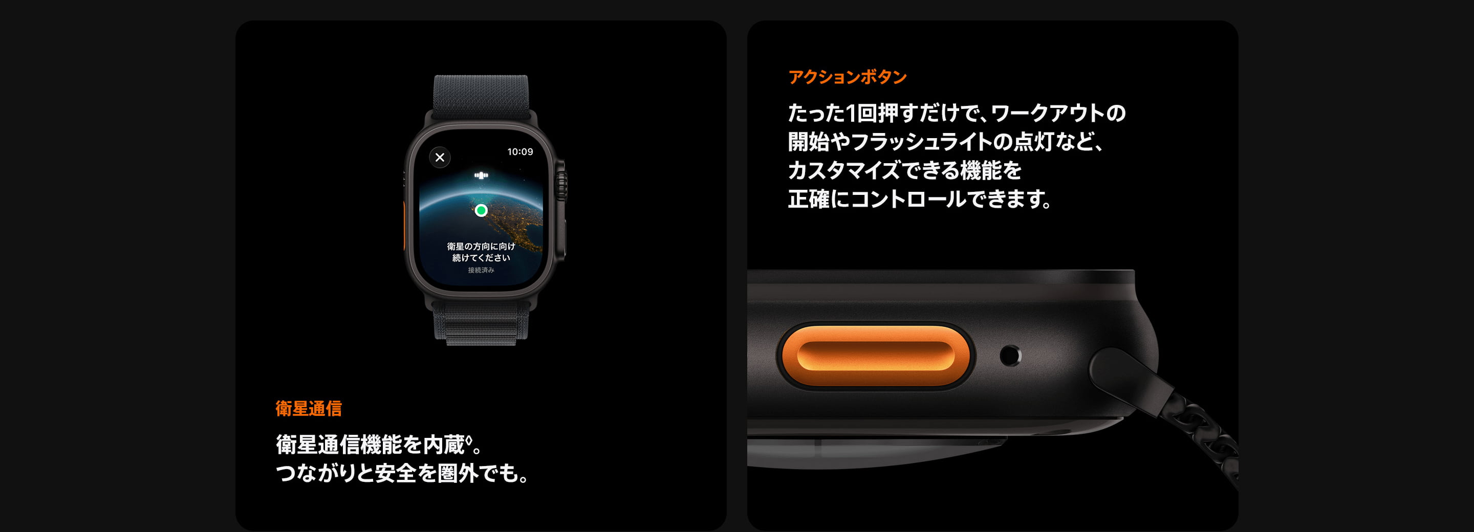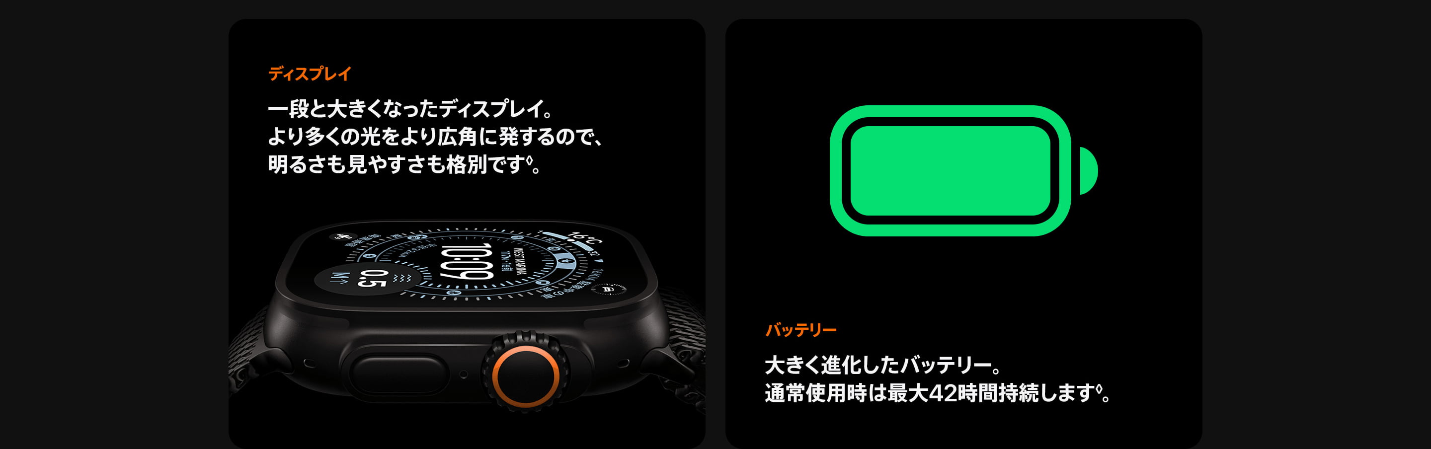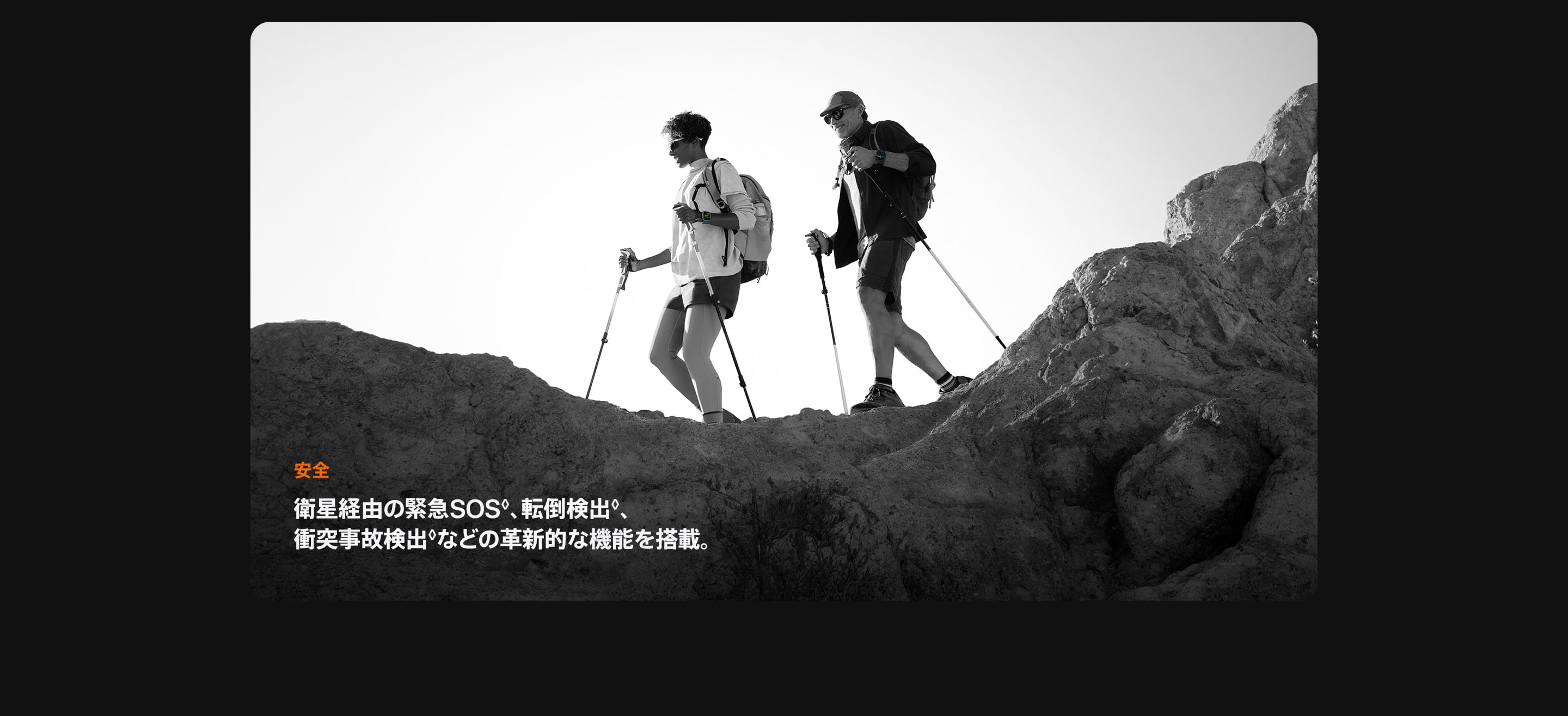 すべてのApple WatchとApple Watch Ultraには、製品購入後1年間のハードウェア製品限定保証と90日間の無償サポートがついています。AppleCare+ for Apple Watch、またはAppleCare+ for Apple Watch Ultraに加入すると、保証とサポートが延長されます。さらに、過失や事故による損傷に対する修理などのサービスを、1回につきApple Watchは9,200円、Apple Watch Ultraは10,700円のサービス料で、利用回数の制限なく受けられます。Appleの専任スペシャリストにチャットまたは電話で優先的に問い合わせることもできます。詳細については規約をご覧ください。