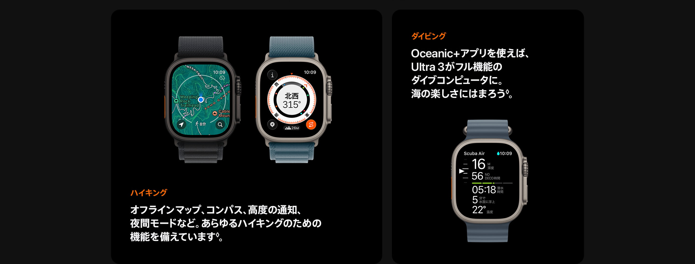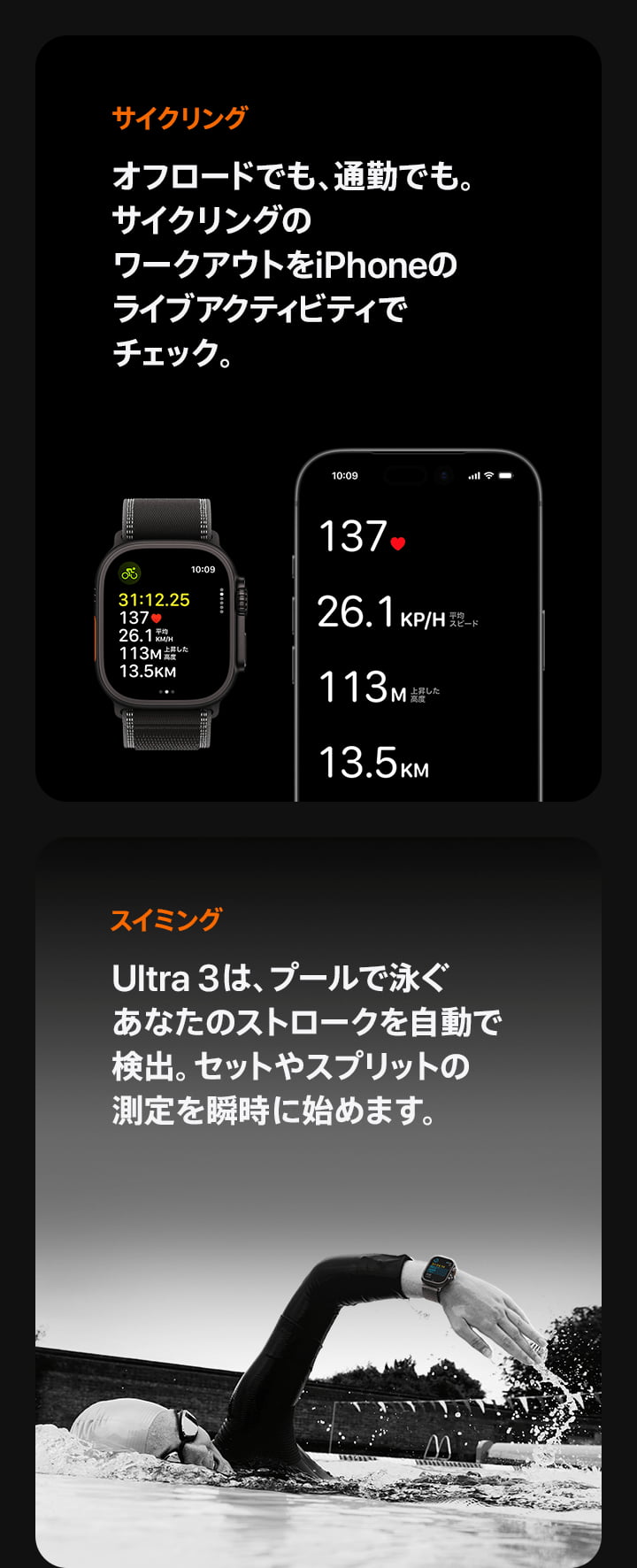 Apple Watch Ultra 3(GPS + Cellularモデル)- 49mmブラックチタニウムケースとブラックアルパインループ - M