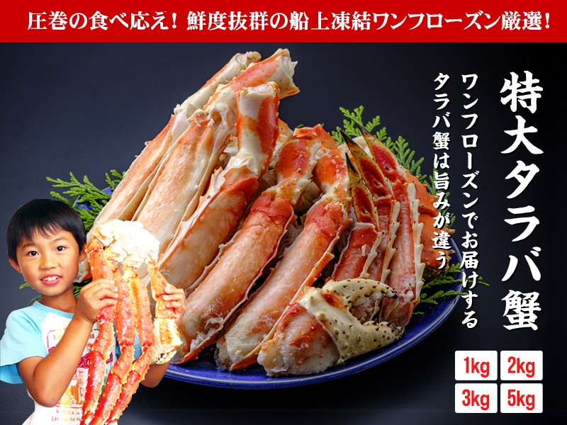 特大タラバ蟹1kg/2kg/3kg/5kg 当店の看板商品は、楽天市場で3億以上の商品の中から総合ランキング1位を獲得しました。 この人気のタラバ蟹は、23,000件以上のレビューを持つロングセラー商品です。私たちのワンフローズン製法が人気の理由です。 漁獲直後に茹で、船内で急速に凍結することで、鮮度をそのままに保存しています。この方法により、タラバ蟹本来の美味しさを最大限に引き出しています。 お客様には1kg・2kg・3kg・5kgのサイズからお選びいただけます。 天然生ウニ300g 当店の特選無添加ウニは、豊かな海が広がる南米チリのプンタアレナスで獲れます。チリはその長い海岸線で知られ、寒冷な水域で育つウニは特に美味しいとされています。日本の三陸や北海道と同様、チリのウニも冷たい海域のものが評価されています。 私はこの高品質なウニを確かめるため、30時間をかけてプンタアレナスを訪問しました。当店は、日本人経営のHANAMARR社からAランクのウニのみを選んで輸入し、国産品とは比べ物にならないほどリーズナブルな価格で、、ミョウバン不使用の天然の風味をそのままお届けしています 特大鰻の蒲焼き長焼180g前後×2枚 鹿児島県で、名人 田中さんが抗生物質などは一切使用しない無投薬で愛情たっぷりに育てたウナギです。そんな安全・安心のウナギを、同じく鹿児島県で炭火焼きにこだわる鰻メーカーで焼き上げました。炭火焼きならではの遠赤外線でしっかり焼くことで、余分な水分や脂が落ち、香ばしくふっくら仕上がっております。大型180gサイズに山椒付き蒲焼のタレ付きが2枚セット、さらに専用黒化粧箱でお届けします 広島県産超特大剥き牡蠣1kg(NET800g) 広島県だけでなく全国でもただ1社、窒素凍結で凍結している山下水産の冷凍剥き牡蠣です。 窒素凍結は、一般的な急速凍結よりも凍結までの時間が短く、瞬間的に凍結できる設備です。しかし、窒素凍結であれば瞬間的に凍結することで氷の結晶を最小化できるため、細胞の破壊もなく旨みの流出がほとんどありません。山下水産だけが持つこの技術により、他の冷凍剥き牡蠣では味わえない旨みたっぷりの牡蠣に仕上がっています。しかも希少な超特大3Lサイズです。 飲食店様からのリピート注文も多い商品です。 定番のカキフライのほか、牡蠣鍋、牡蠣のバター焼き、ベーコン巻き焼きもオススメです! 大爪入り!超特大生ズワイポーション1kg 当店の店長が「生ズワイ蟹」商品に感じていた2つの不満がありまして、「肩肉はいらないんだよなぁー」「太脚棒肉フルポーションだけの商品は贅沢だけど、大爪ははいっていて欲しいなぁー」しかし! これらを解消した当店オリジナルの「大爪入り!特大生ズワイ蟹フルポーション1kg」が完成! 肩肉なし!大爪、爪下、太脚棒肉だけをフルポーションに仕上げましたので食べやすさ抜群!生食可の厳格な企画で生産しているので鮮度も抜群! 超特大サイズの“生”ズワイ蟹ですので食べ応えも抜群! かに鍋、蟹しゃぶ、蟹ステーキでお楽しみ下さい! 豪華化粧箱入りですので、贈り物としてもオススメです。
